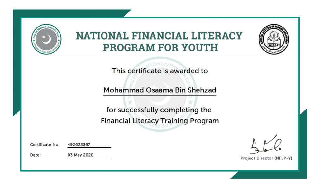 Today, I am delighted to share that I have successfully completed the State Bank of Pakistan’s financial literacy program by playing PomPak. I also received a certificate from the National Institute of Banking and Finance, NIBAF, which I am sharing with you all. I strongly advise that you play this game and ask the children in your family to try it out, so they can also become experts in financial matters.