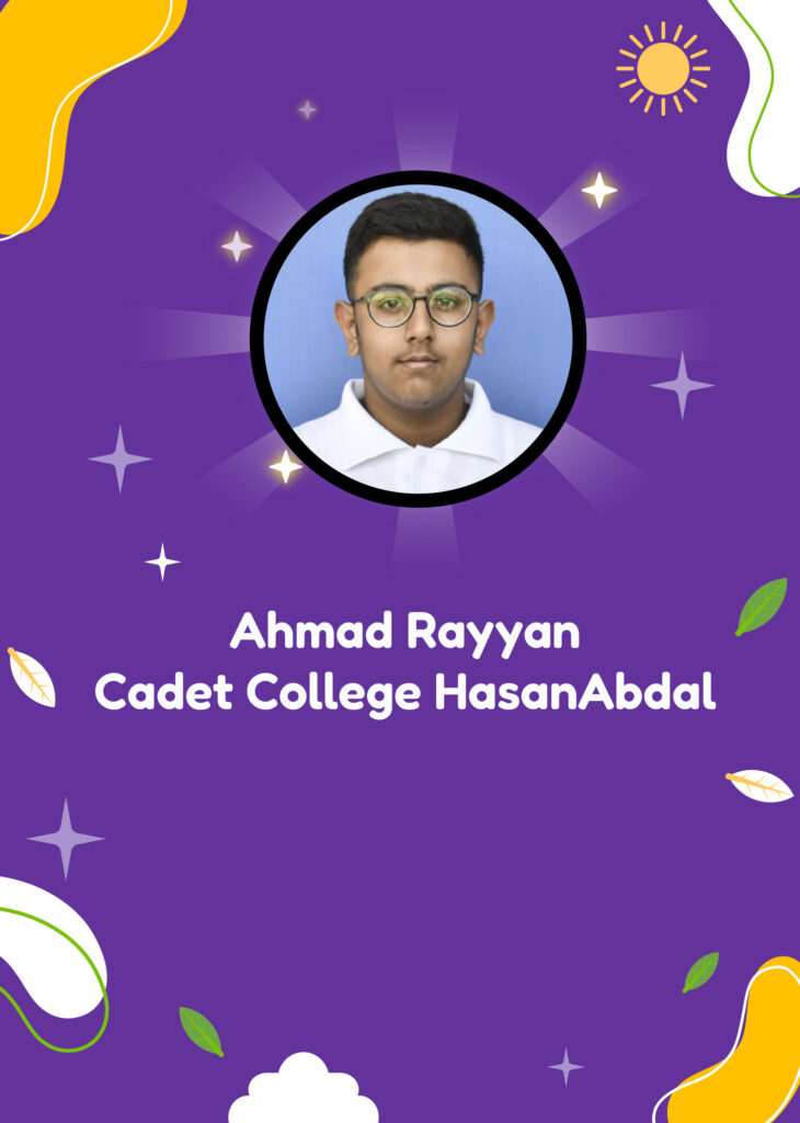 | Muhammad Salman Bin Faheem | 71***@cch.edu.pk | 4 | Cadet College HasanAbdal | Pakistan |
