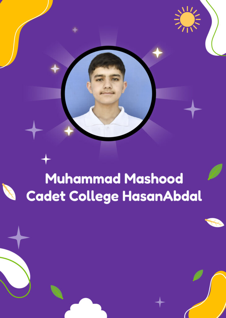 | Muhammad Mashood Ihsan | 71***@cch.edu.pk | 11 | Cadet College HasanAbdal | Pakistan |