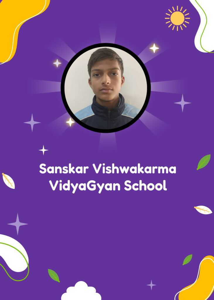 | Sanskar Vishwakarma | sv4***@vidyagyan.in | 10 | VidyaGyan School | India |