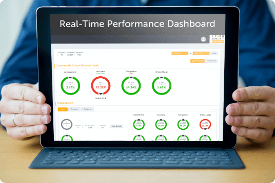- Use a detailed performance dashboard to track any student or class who is falling behind